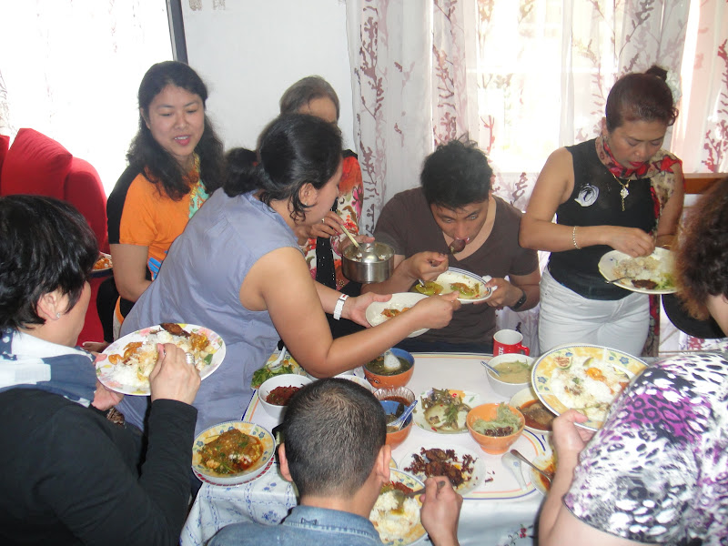 ဆြမ္းအလွဴ႐ွင္ ကုိစုိး၀င္းသန္း + ဆြမ္းအလွဴအမ မတင္တင္၀င္း (သမီး) မခ်စ္စု၊ (သား) ေမာင္ခ်မ္းေျမ့ကုိ မိသားစုမွ ဆြမ္းခဲဖြယ္ ေဘာဇဥ္မ်ားဆက္ကပ္ လွဴဒါန္း၍ ပရိတ္တရားေတာ္ နာယူျခင္းစတဲ့ ကုသုိလ္ မဂၤလာကုိ အလွဴ႐ွင္ မိသားစုရဲ့ ေနအိမ္မွာပဲ က်င္းပျပဳလုပ္ခဲ့ပါတယ္။ တစ္လ ႏွစ္ႀကိမ္လည္း ဗုဒၶသာသန ရံသီ အသင္းတုိက္သုိ႔ လာေရာက္၍ ဆြမ္းကပ္လွဴဒါန္းေနၾကတဲ့ အလွဴ႐ွင္ မိသားစုျဖစ္ပါတယ္။ ဒီကေန႔မွာေတာ့ ဂ်ာမဏီႏိုင္ငံရဲ့ ႐ုံးပိတ္ရက္ျဖစ္သျဖင့္ ဧည့္ပရိသတ္မ်ားကုိပါ ဖိတ္မံ၍ ဧည့္ခံေကၽြးေမြးရင္း ပရိတ္တရားေတာ္ကုိပါ နာယူလုိတဲ့အတြက္ ေနအိမ္မွာပဲ ကုသုိလ္ ေကာင္းမႈျပဳ လုပ္ျခင္းျဖစ္ပါတယ္။ ေန႔ လည္ (၁ း ၀၀) နာရီ အခ်ိန္တြင္ အလွဴ႐ွင္မိသားစုနဲ႔ အတူ သီလေဆာက္တည္၍ ပရိတ္တရားေတာ္ နာယူကာ လွဴဒါန္းမႈ အစုစုတုိ႔ကုိ ေရစက္သြန္းခ် အမွ်အတန္း ေပးေ၀ခဲ့ၾကပါတယ္။